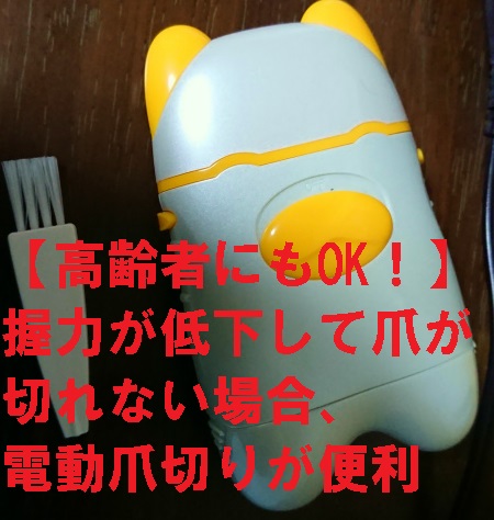 電動爪切りは、通常の爪切りでは、爪を切るのが難しい方にとても便利です。
